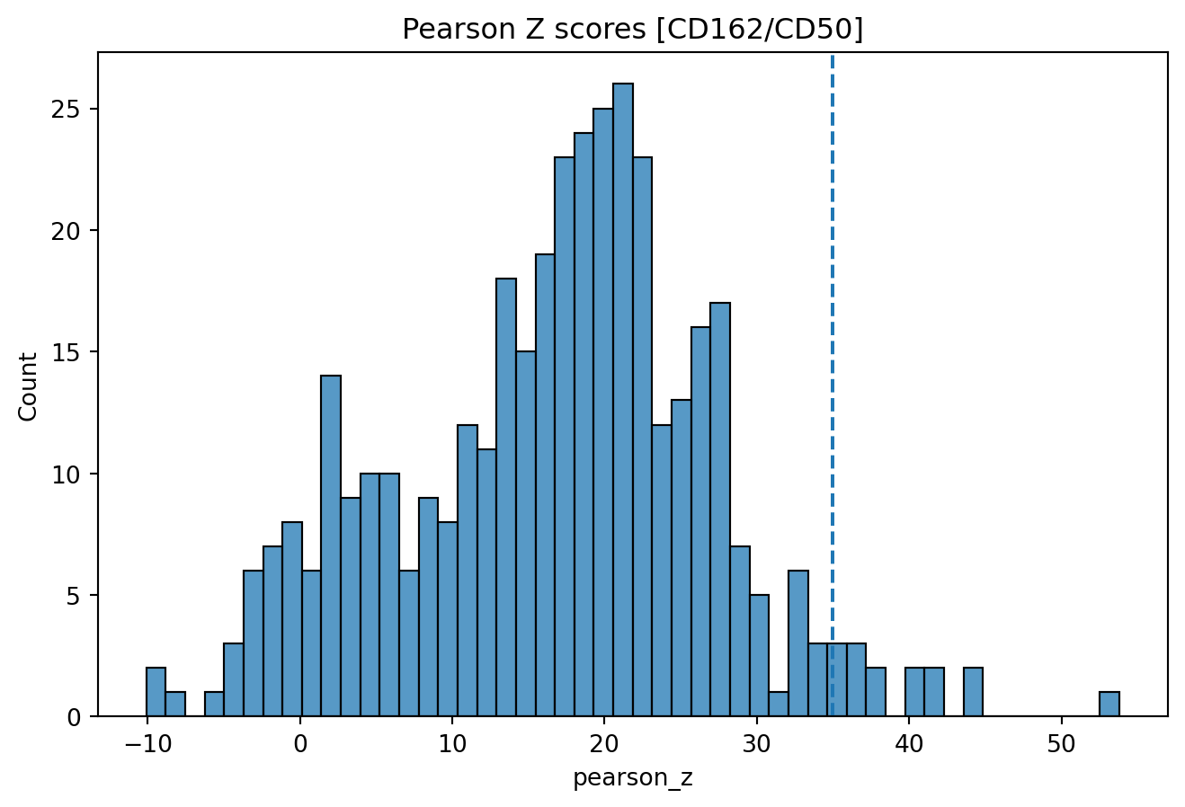 Text(0.5, 1.0, 'Pearson Z scores [CD162/CD50]')