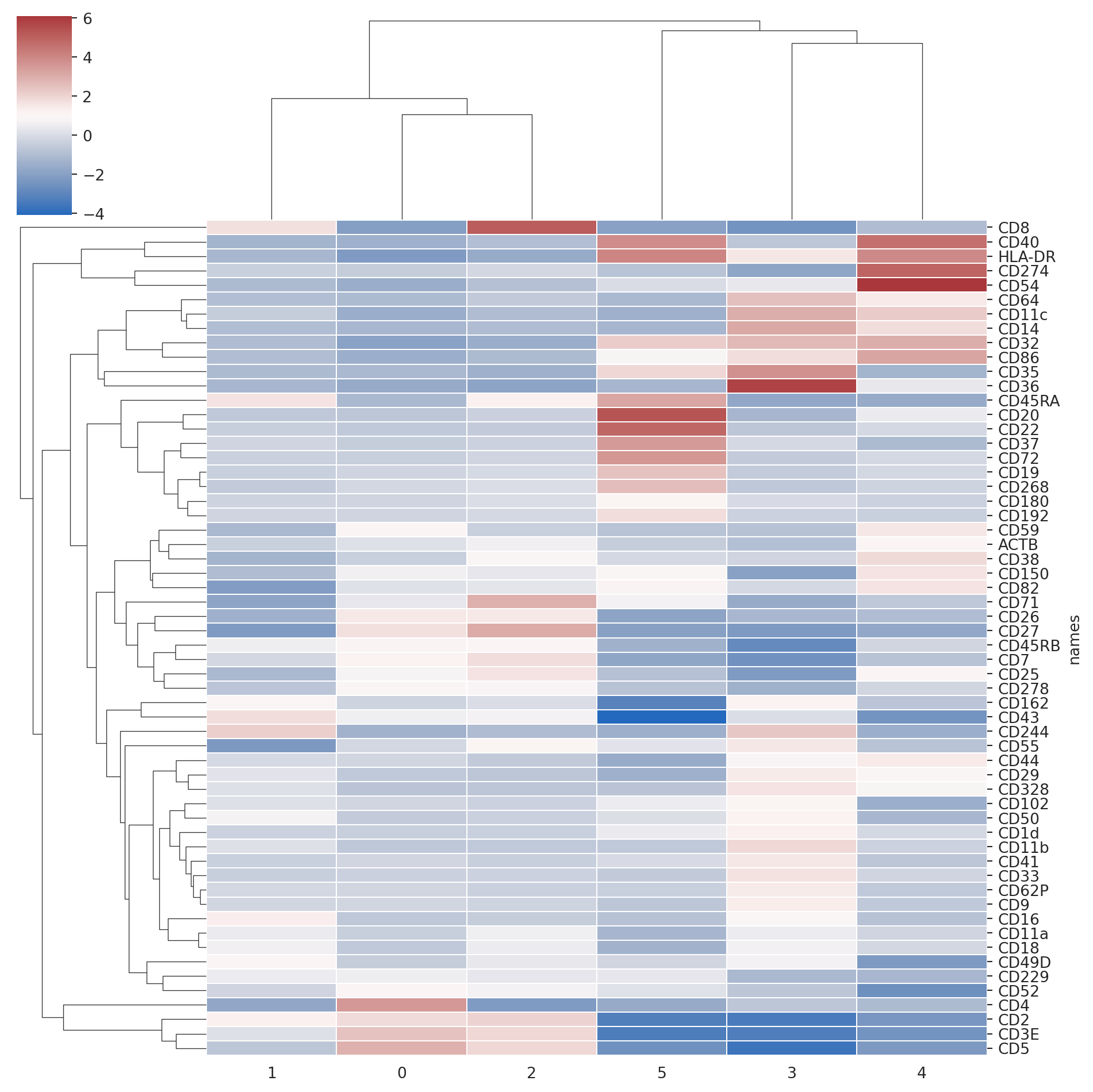 To help us compare the abundance levels of markers across clusters, we will visualize the average fold change of each cluster in a heatmap.