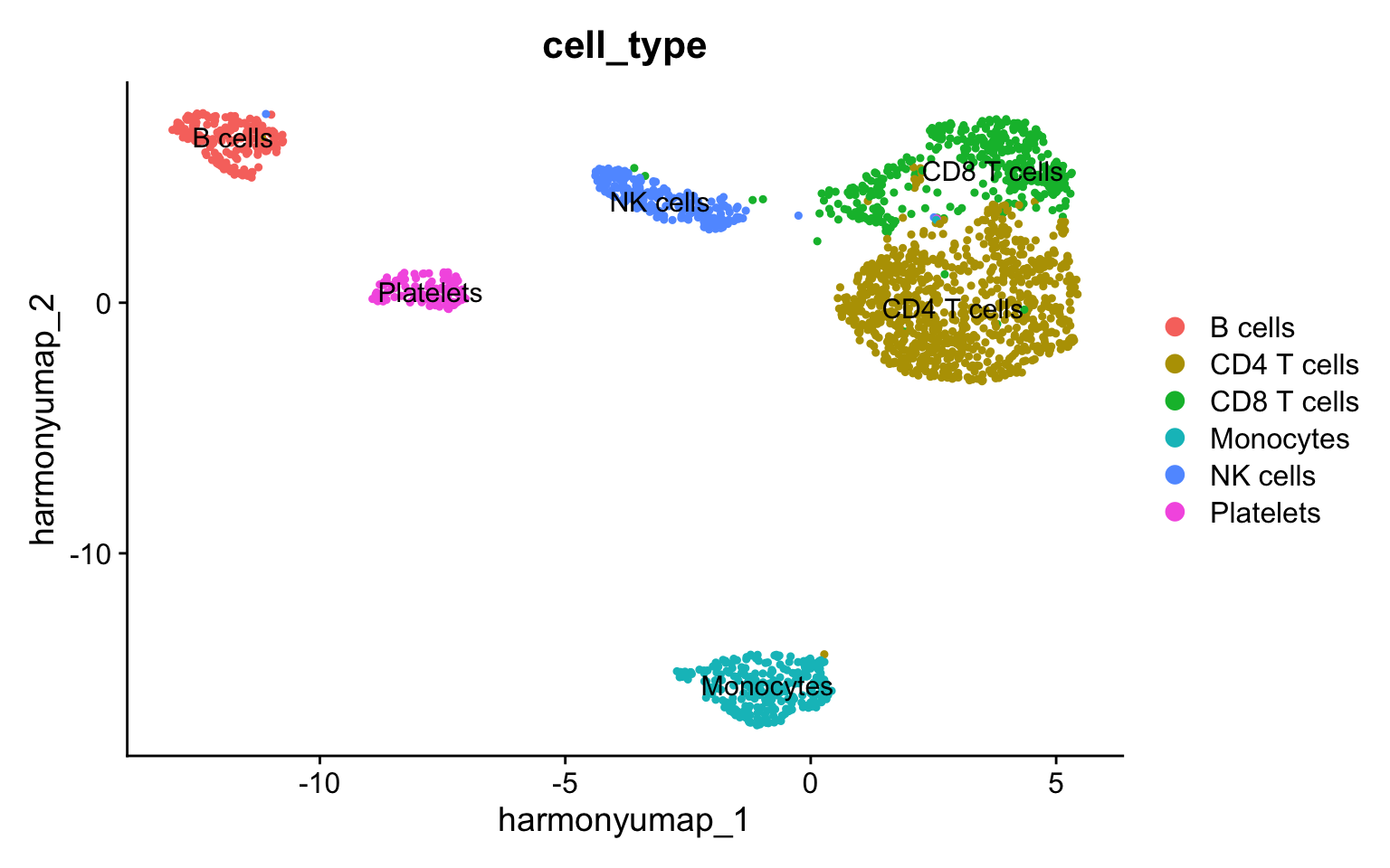 DimPlot(group.by = "cell_type", reduction = "harmony_umap", label = TRUE)