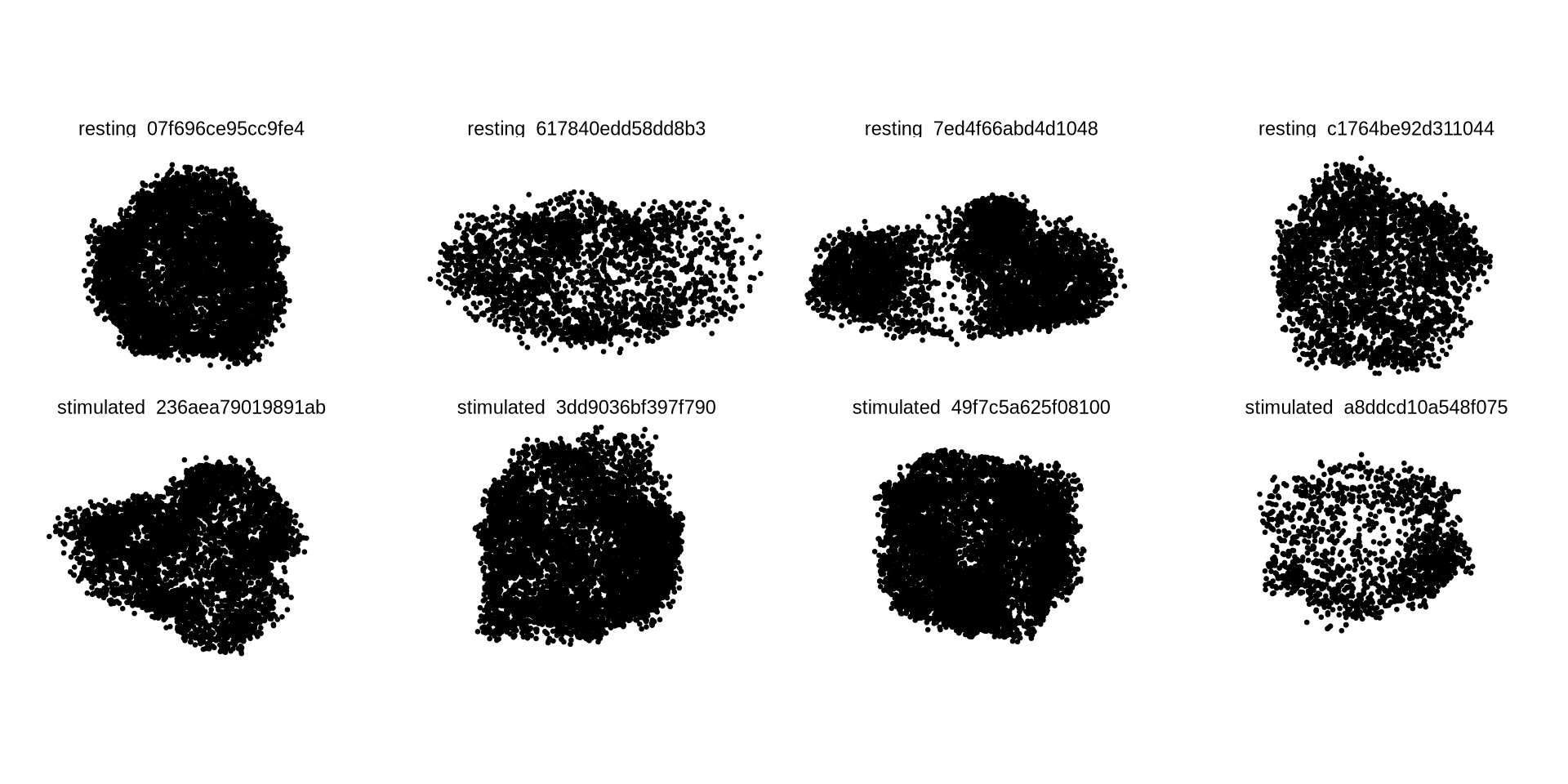 4 dimensional reductions calculated: pca, umap, harmony, harmony_umap