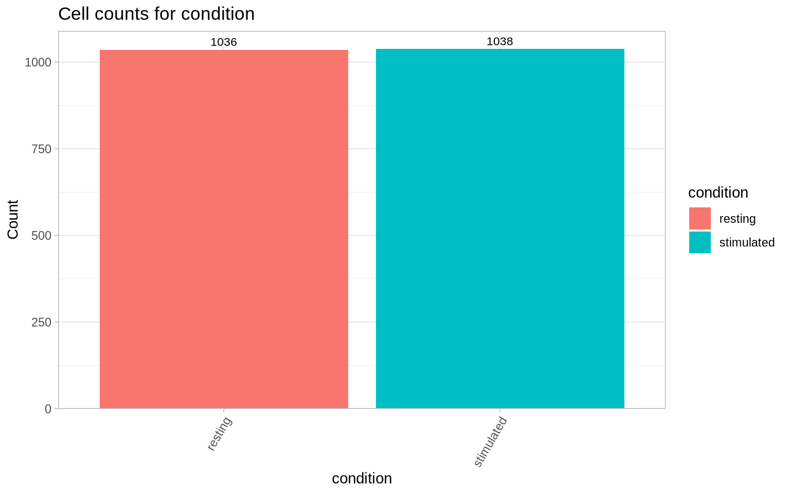 Now we can inspect the number of called cells per condition after filtering out small cells. The observed numbers of cells are close to the expectation of 1000 cells per condition.
