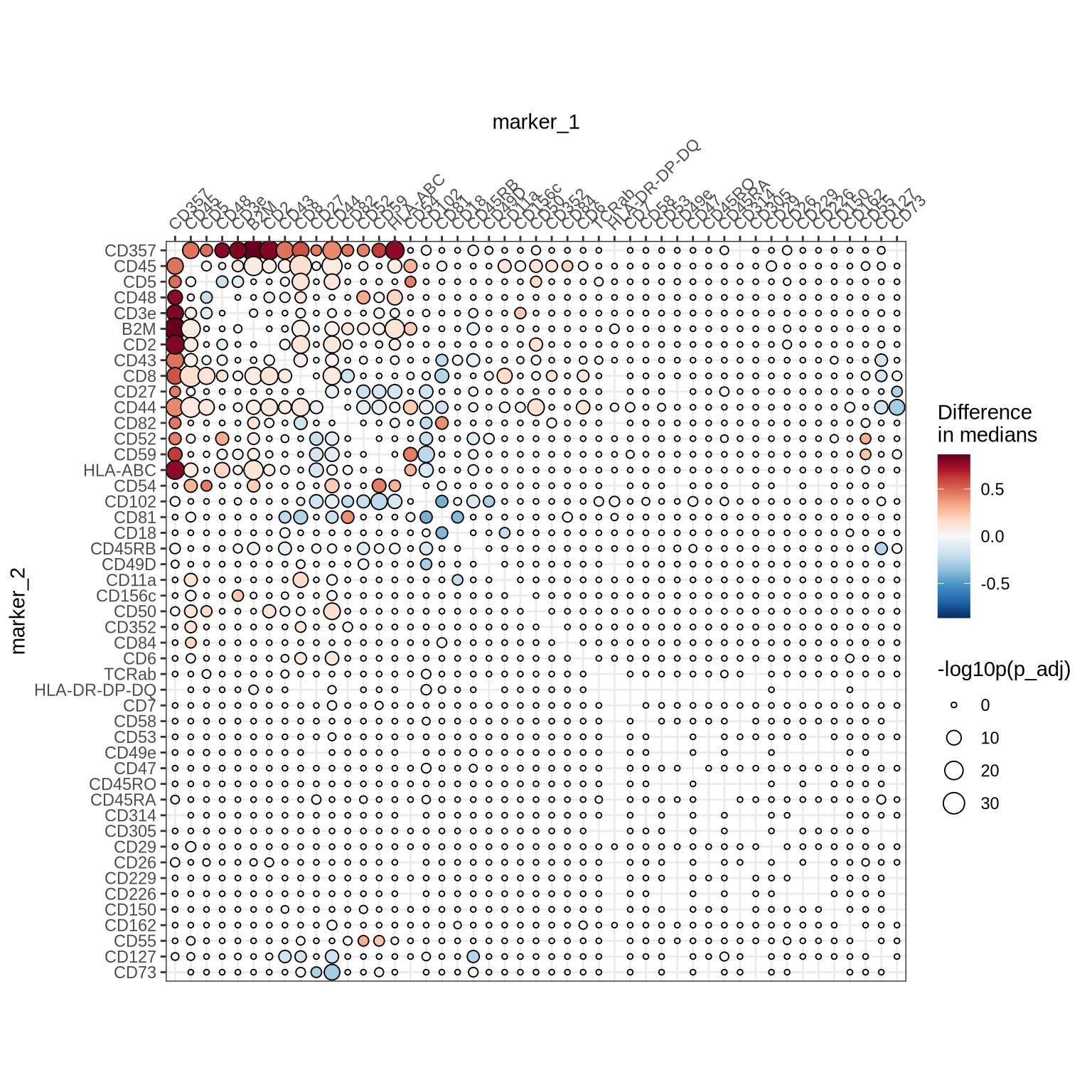 filter(marker_1 %in% c("CD50", "CD5", "CD27", "CD52", "CD82", "CD102", "HLA-ABC", "B2M")) %>%