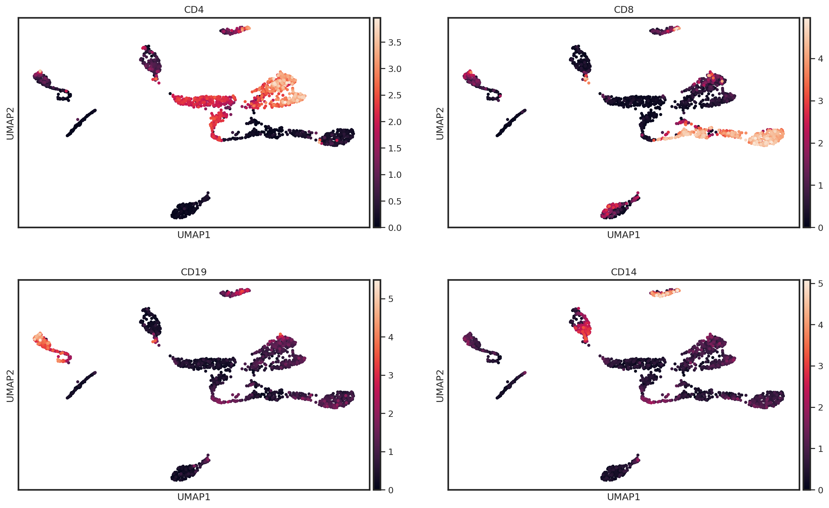 markers_of_interest = ["CD4", "CD8", "CD19", "CD14"]