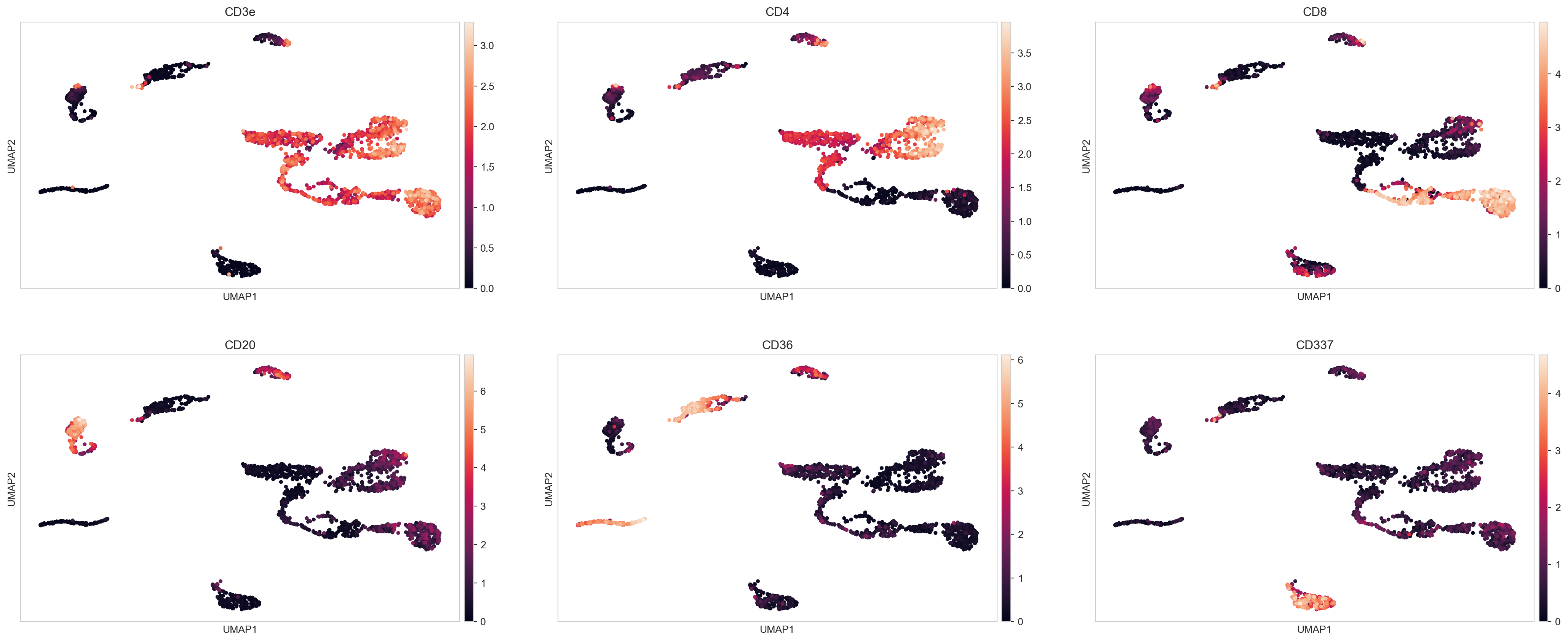 markers_of_interest = ["CD3e", "CD4", "CD8", "CD20", "CD36", "CD337"]