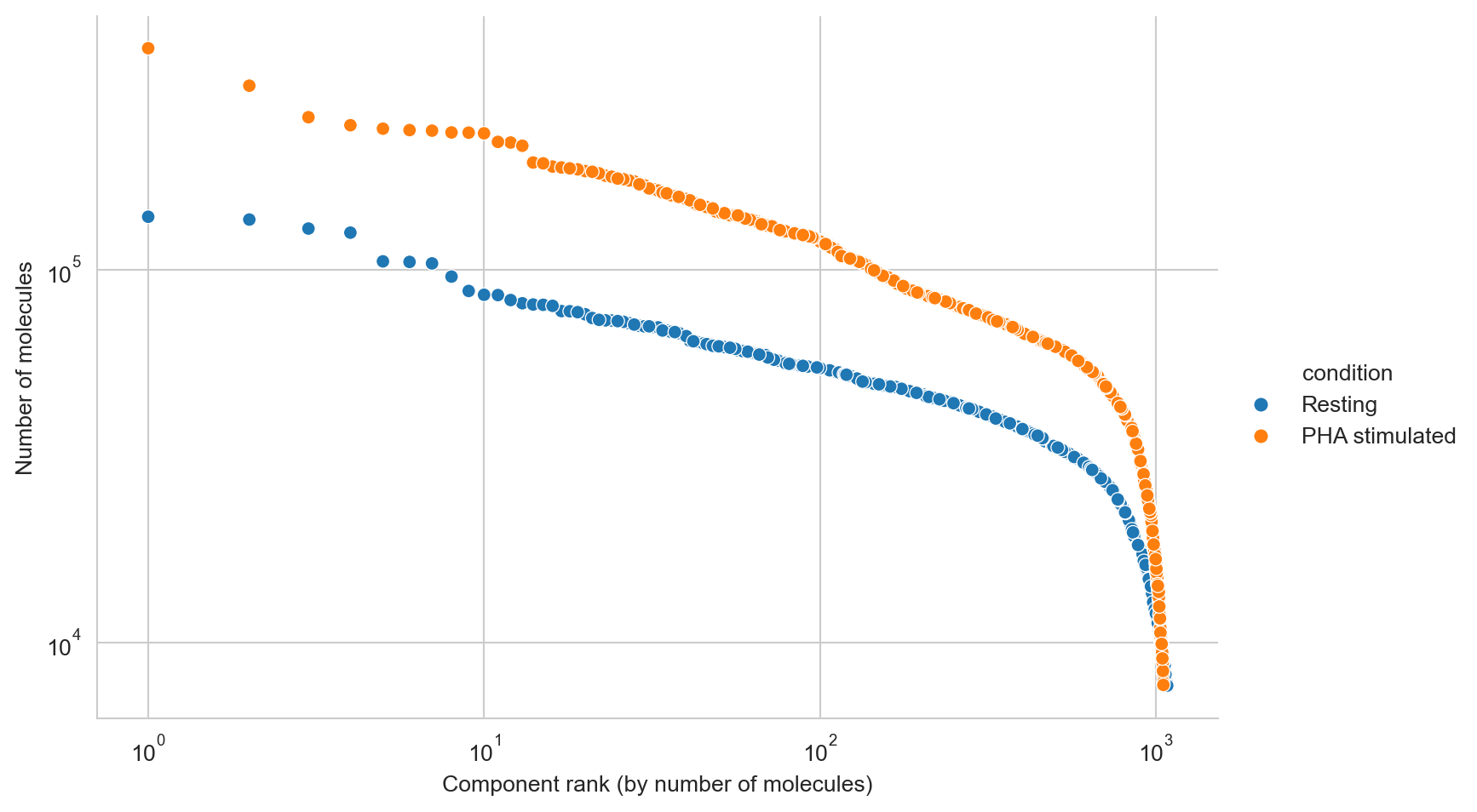 fig, ax = molecule_rank_plot(molecule_rank_df, group_by="condition")